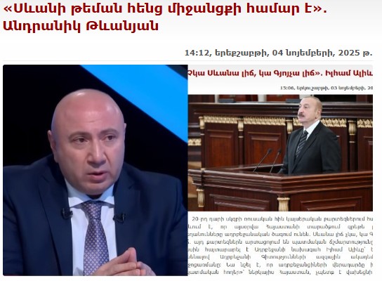 Qeyd olunur ki, Azərbaycan liderinin fikirlərinin Ermənistanda müzakirəsi diqqət çəkir: “Baş nazir Nikol Paşinyan bildirib ki, Azərbaycan Prezidenti bəyan edib, Çar Rusiyasının xəritələrinə baxsaq, orada “Sevan” adı yoxdur. O, Sevanı Göyçə adlandırmır, deyir ki, Çar Rusiyasının xəritələrində Sevan adı yoxdur. Azərbaycan tərəfi Ermənistan parlamentində niyə “Dağlıq Qarabağın bayraqlarının” asıldığını soruşur və bildirirlər ki, əgər belədirsə, biz də Sevana Göyçə deyəcəyik”.