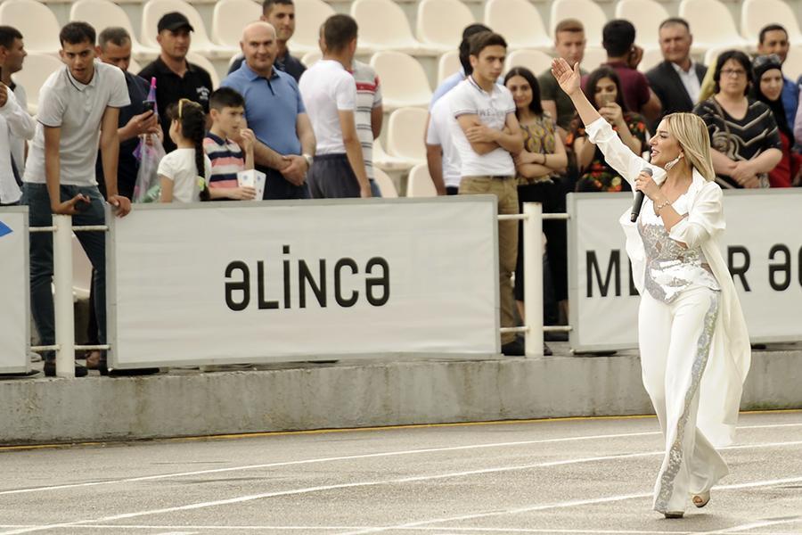 Rakus.az PFL-in saytına istinadən xəbər verir ki, Naxçıvan Muxtar Respublikası Stadionunda təkil edilən tədbiri açıq elan edən aparıcı Kamran Həsənli Azərbaycan Respublikasının əməkdar artisti Tünzalə Ağayevanı səhnəyə dəvət edib. Tünzalə Ağayevanın konsert proqramına Peşəkar Futbol Liqası tərəfindən stadiona gələn azarkeşlərə paylanan Azərbaycan bayraqları xüsusi rəng qatıb. Açılış mərasimindən fotoları təqdim edirik.