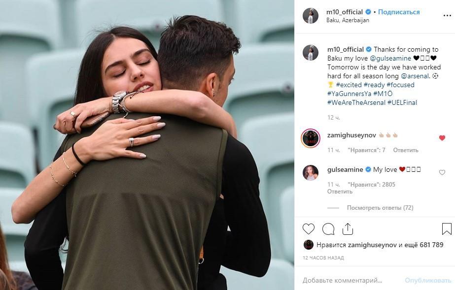 Özil isə ötən gün Əminə ilə şəklini paylaşaraq ona təşəkkürünü bildirib: “Mənimlə birlikdə Bakıya gəldiyin üçün təşəkkürlər, mənim sevgilim! Bütün mövsümü sabahkı gün üçün ağır işləmişik”.